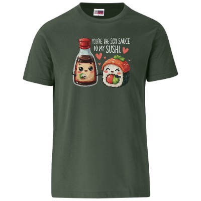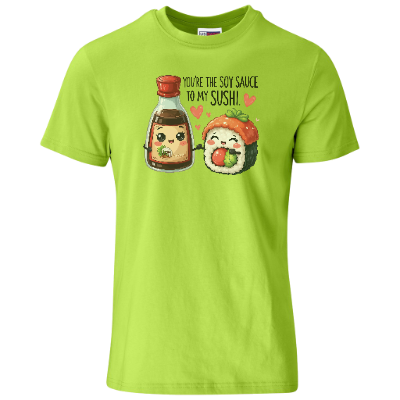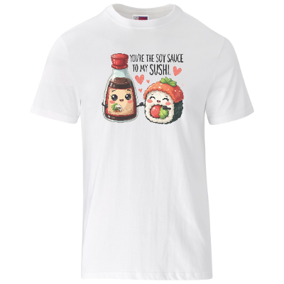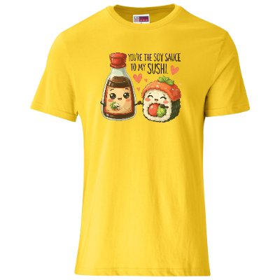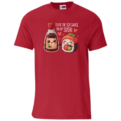 Elevate your wardrobe with ourYou’re the Soy Sauce to My Sushi: “Tying us together, one flavor at a time.”A playful twist on love, this t-shirt is perfect for couples who love to have a little fun with their emotions. With a dash of sarcasm and a pinch of humor, this design is sure to bring a smile to anyone’s face.”